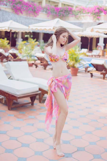 Cô thường xuyên xuất hiện trong các bộ bikini với những đường cắt xẻ sâu.
