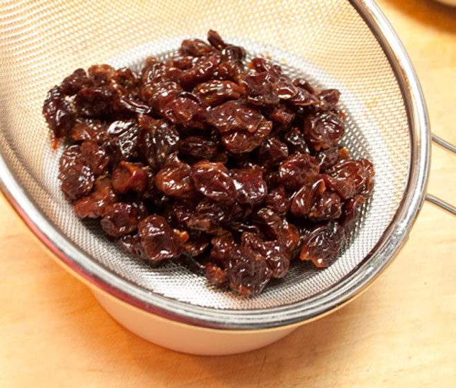 Ngâm quả anh đào khô trong rượu vang port khoảng 30 phút.