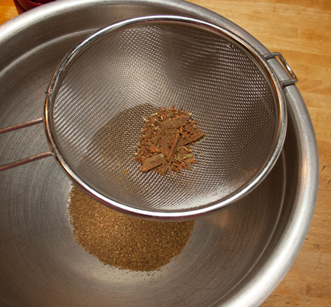 - 1 thìa cà phê hạt thì là; 1 thanh quế dài khoảng 5cm; 3 hoa hồi; 5 quả bạch đậu khấu; 6 nhánh đinh hương; 1/2 thìa cà phê rau mùi; 1/2 thìa canh hạt thì là Ai Cập; 1 thìa canh hạt tiêu đen nguyên hạt