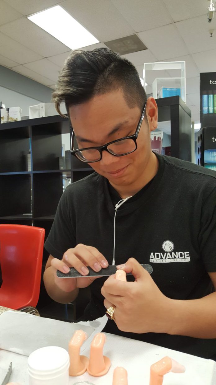 Qua Mỹ mới 6 tháng, nhưng Thành, 30 tuổi, hiện sống ở Garden Grove, đã học được 450 giờ nail trong chương trình 600 giờ.