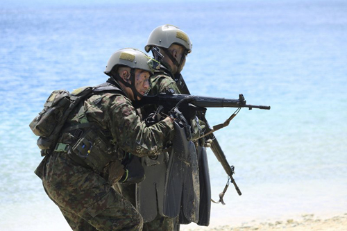 Binh sĩ Nhật Bản tham gia tập trận đổ bộ với quân đội Mỹ, Pháp và Anh trên đảo Guam vào ngày 13/5. Ảnh: AP.