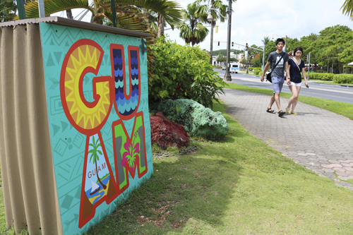 Khách du lịch đi qua khu vực trung tâm mua sắm Tamuning, đảo Guam vào ngày 15/5. Ảnh: AP.