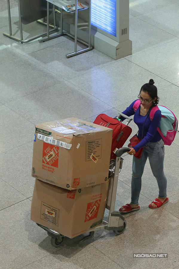 Trong khi đó, nữ diễn viên chật vật với đống hành lý cồng kềnh.