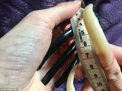 Tính đến nay, móng tay của Simone Taylor đã dài hơn 15 cm (6 inch).