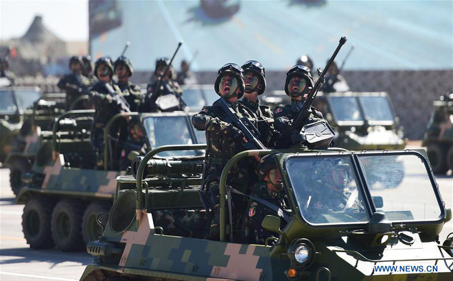 Quân đội Trung Quốc duyệt binh nhân kỷ niệm 90 năm ngày thành lập. Ảnh: Xinhua
