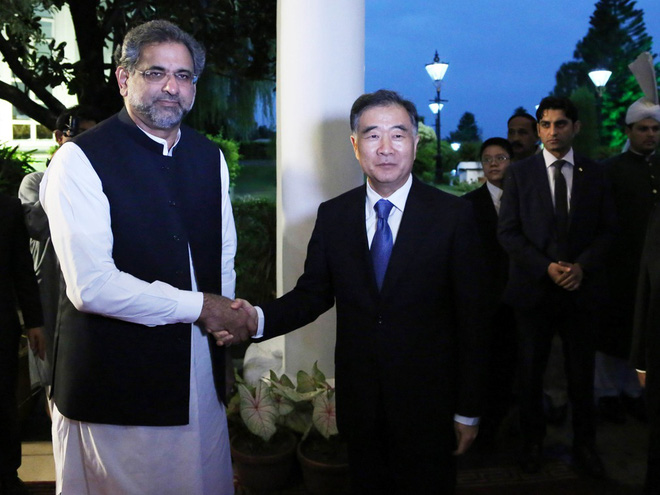Ngày 14/8, Bộ Ngoại giao Trung Quốc thông báo, tại cuộc gặp giữa Thủ tướng Pakistan Shahid Khaqan Abbasi và Phó Thủ tướng Trung Quốc Uông Dương, hai bên đă trao đổi ư kiến sâu rộng về việc thúc đẩy hợp tác hiệu quả giữa hai nước và đạt được sự đồng thuận chung.