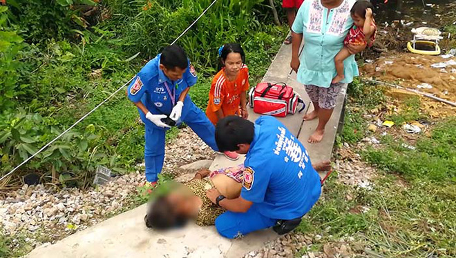 Các phóng viên Thái Lan cho biết, khi đến nơi xảy ra vụ việc thì thấy nạn nhân là bà Sombun, 62 tuổi đang nằm bất động trên mặt đất, cách đường ray tàu lửa khoảng 5m. Sau khi kiểm tra sơ bộ thì thấy bà cụ này bị thương ở vùng eo phải. Ngay lập tức, các nhân viên cứu hộ đã đưa nạn nhân đến bệnh viện Hat Yai để xem xét vết thương.