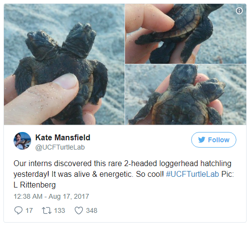 Kate Mansfield, nhân viên của phòng thí nghiệm UCF, đã đăng tải những bức ảnh chụp con rùa trên Tweeter vào hôm 15-8.