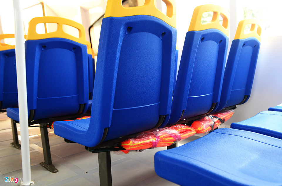 Tuy nhiên, áo phao vẫn được để dưới các ghế phòng trường hợp xảy ra sự cố. Tuyến buýt đường sông này chỉ cần 30 phút là hoàn thành lộ trình, bằng 2/3 so với buýt đường bộ trên cùng một tuyến, giá vé dự kiến 15.000 đồng/lượt.