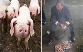 Vietbf.com - Lực lượng cứu hỏa từng cứu 20 chú lợn khỏi đám cháy, nửa năm sau lại bị chủ nông trại đem 2 lợn mẹ và 18 chú lợn con ra xẻ thịt làm xúc xích gửi tặng đội cứu hỏa để tỏ lòng cảm ơn họ từng giúp đỡ trong chuyện này.