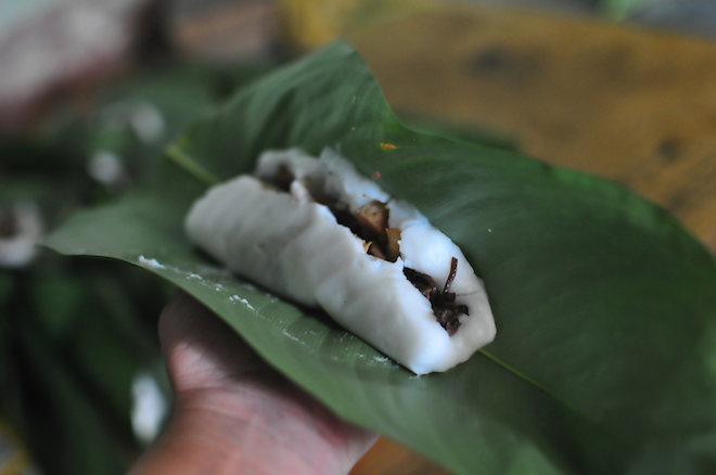 Bánh tẻ làng Chờ dẻo chứ không nhão, nát như thứ bánh giò mà bạn thường thấy. Bánh vừa có độ giòn lại vừa có vị đậm, vị béo của nhân, nồng nàn của mùi lá, không thể lẫn vào thứ bánh tẻ nào khác được.