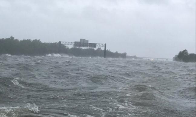 Đường quốc lộ 10 của Texas ngập sâu trong nước lũ do bão Harvey. Bão Harvey trút mưa kỷ lục gây lũ lớn ở Texas. Quốc lộ 10 giờ đây không khác gì đại dương dậy sóng.
