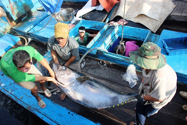 Đưa sản phẩm vào bờ sau chuyến đi biển dài ngày. Ảnh: D.T