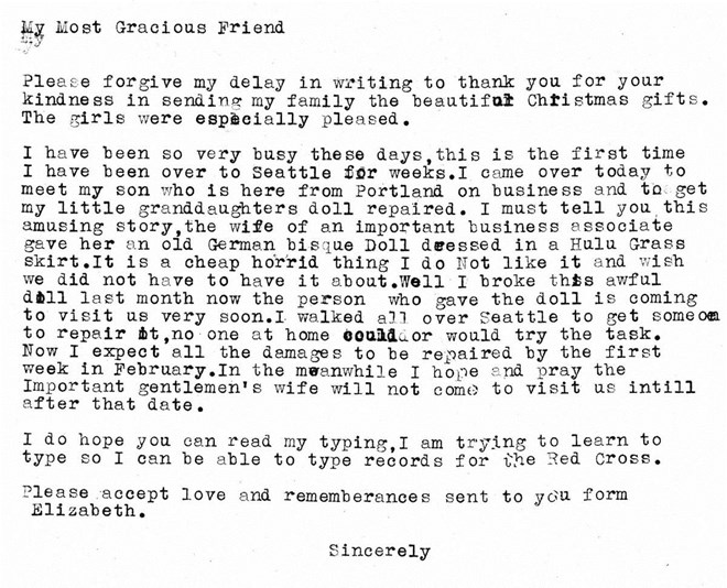 Một bức thư khác đề cập tới việc chăm sóc một gia đình búp bê Trung Quốc ở San Francisco. Bức thư cuối cùng thì nói về búp bê vũ công đáng yêu của Thái Lan đã bị hư hại ở giữa thân nhưng đã được sửa chữa.