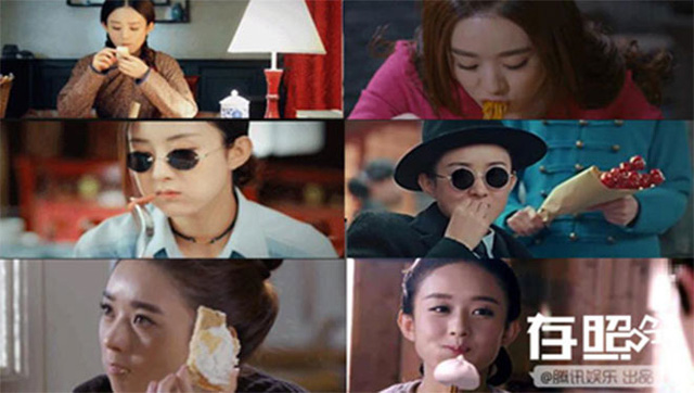 Trong phim “Hoa thiên cốt”, Tiểu Cốt có thể ăn được chiếc bánh bao giả một cách ngon lành, rồi đến bộ phim “Lão Cửu Môn”, nhân vật từ khi vừa xuất hiện miệng đã ăn không ngừng. Có người xem bình luận “Quả thật không thể xem phim của Triệu Lệ Dĩnh nữa rồi, xem mấy bộ phim cô ấy ăn, Triệu Lệ Dĩnh chưa béo mà tôi đã tăng lên 5 cân”.