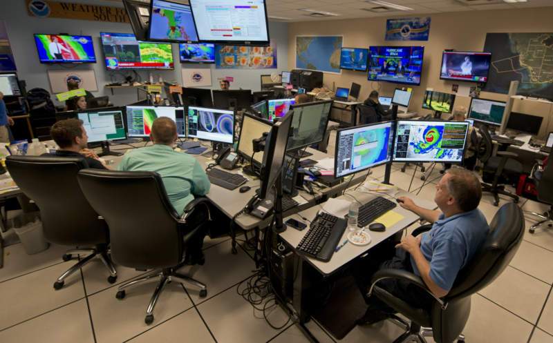 Trung tâm theo dõi bão của Sở Khí Tượng Quốc Gia tại Miami.
