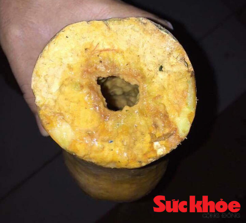 Trên xe gồm có rau muống, củ su su, bí đỏ, bí xanh, trứng vịt... đã có hiện tượng bị hỏng như ung hoặc thối. Cụ thể với bí đỏ, bí xanh, su su đều bị thối, củ không nguyên vẹn. Nhiều phụ huynh cho biết trong bí xanh có ròi bên trong.