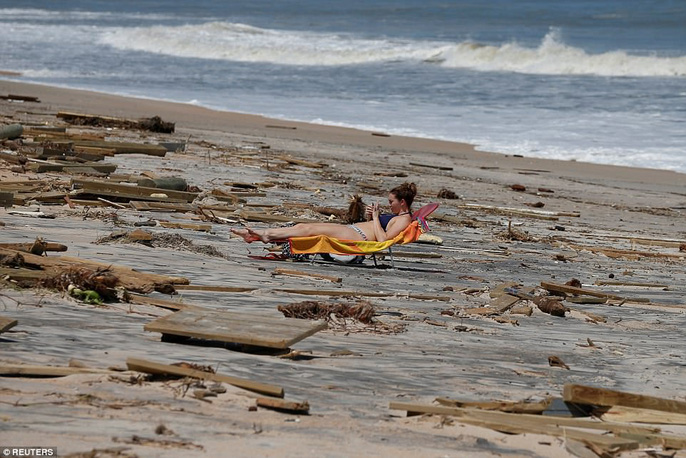 Nhiều ngôi nhà vẫn ngập trong nước lũ, trong khi bãi biển ngổn ngang mảnh vỡ. Ảnh: REUTERS