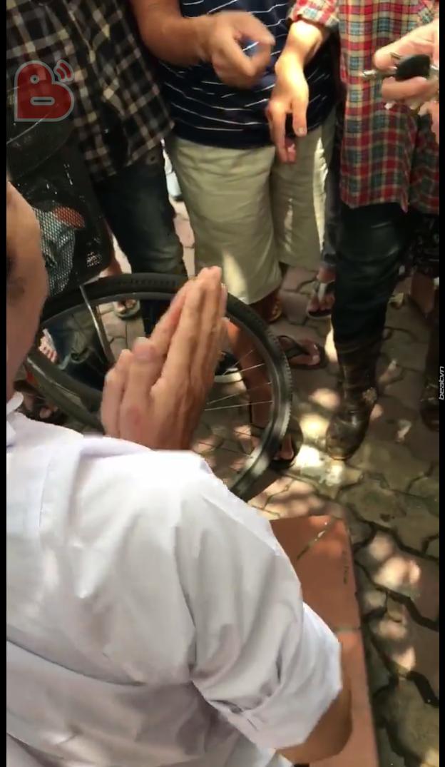 Hiện chưa rõ sự việc đúng sai ra sao nhưng người đàn ông trong clip đã phải quỳ xuống van xin, phân bua và bị thương khá nặng.
