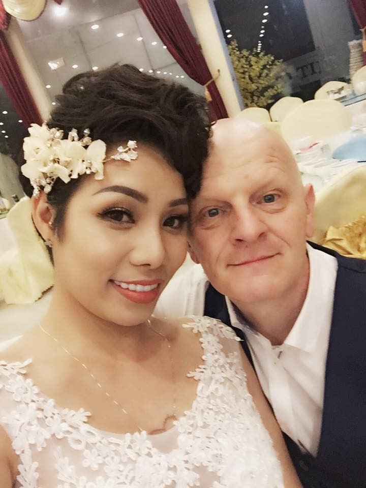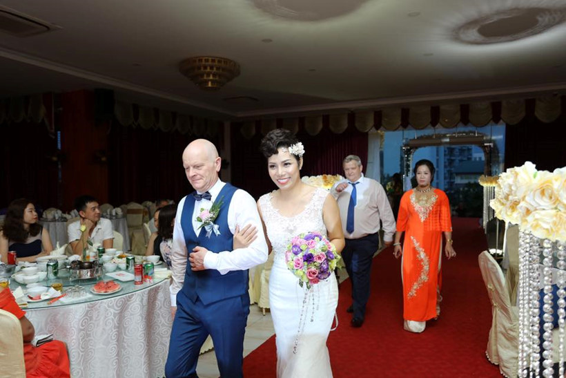 Tuy nhiên, vì lúc đó kinh tế của cả hai chưa ổn định nên cặp đôi quyết định sẽ hoãn việc tổ chức đám cưới lại. “Chúng tôi chỉ tổ chức một buổi tiệc nhỏ ở Việt Nam với sự góp mặt của bố mẹ và vài người thân của tôi. Anh cứ nắm tay tôi rồi nói “em ơi, anh hồi hộp quá”, chị nhớ lại.