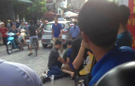 Thọ "sứt" bị quật ngã khi chiếc cửa xe taxi vừa kịp bật mở.