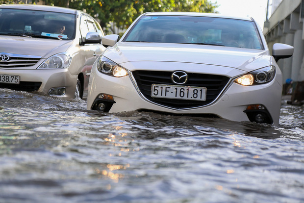 Cả đoạn đường hướng về trung tâm Sài Gòn bị ngập nặng.