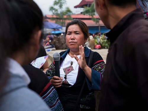 "Có bao nhiêu người ở đây đã mất con gái, mất chị em gái, mất hàng xóm?" bà vừa khóc vừa nói. Mỗi tuần một lần, bà có mặt tại buổi vận động do tổ chức phi chính phủ chống buôn người Vòng tay Thái bình của Mỹ và chi cục Phòng chống tệ nạn xã hội Lào Cai hỗ trợ. Giọng của bà Sương thu hút người đi đường.