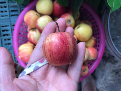Thứ ba là táo hồng mini. Đặc điểm nổi bật của loại táo này là có màu hơi hồng, quả nhỏ chỉ bằng mận hậu. Nếu nhìn qua thì khá giống táo rocket của New Zealand.