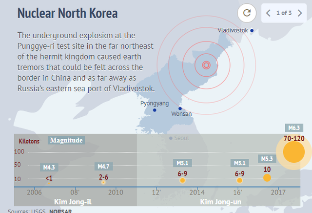 Triều Tiên vừa tiến hành thử hạt nhân lần 6 vào ngày 3-9 và tạo ra một trận động đất mạnh 6,3 độ Richter.