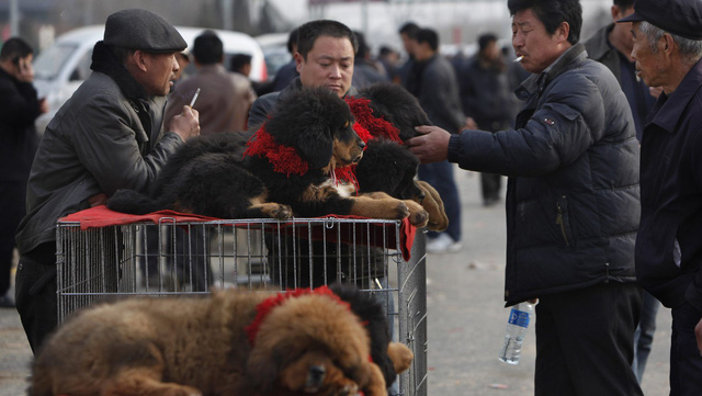 Hai con chó ngao được một nhà đầu tư bất động sản mua với giá 2,7 triệu USD tại một triển lãm thú cưng ở Hàng Châu hồi năm 2014.