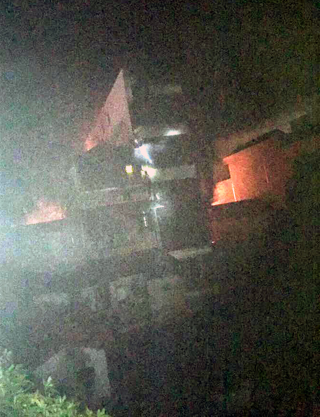 Căn nhà 5 tầng xảy cháy trong đêm.