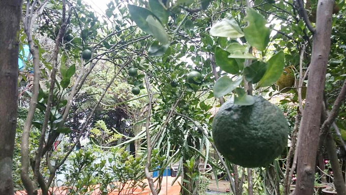 Vườn cam sành vụ nào cũng cho gia đình chị Tiên thu hoạch sọt lớn, sọt bé. Với vợ chồng chị Tiên, đây là nơi họ chọn để nghỉ dưỡng nên bóng mát là điều quan trọng. Chị Tiên thích cảm giác đi dưới các tán lá đan vào nhau khiến trời oi bức cũng trở nên dễ chịu.