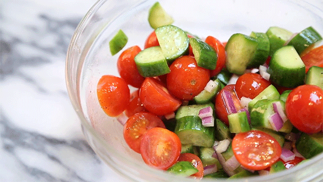 Nếu bạn đang muốn thưởng thức một đĩa salad mà lười cắt củ quả, thì hãy áp dụng cách này. Chưa mất đến 1 phút, bạn đã có thể cắt một rổ cà chua bi ra một cách nhanh chóng. Bạn có thể áp dụng cách này với nhiều loại củ quả khác nhé.