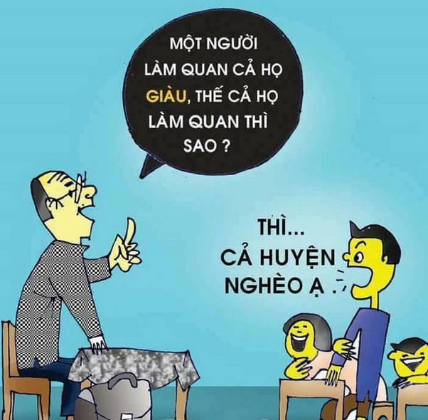 3.Nhớ chuyện ông chú làm doanh nghiệp kể: hễ ra ngoài Hà Nội xin giấy phép gì đó là tiền cả mớ, còn phải đưa quan đi bia ôm. Quan ký rồi, đưa giấy tờ đó cho thằng phòng hành chánh đóng dấu cũng phải móc cho nó 100 triệu. Nếu không nó giả bộ ngâm hồ sơ, mà sếp nó cũng dường như tạo điều kiện cho nó làm vậy để kiếm ăn.