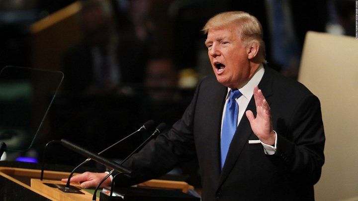 Tổng thống Mỹ Donald Trump gọi Kim Jong-un là "Ông hỏa tiễn" trong bài phát biểu trước Liên Hợp Quốc. (Ảnh: Getty/CNN)