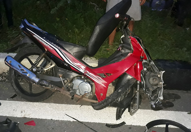 Đến điểm trên, chiếc Sirius của Linh xảy ra va chạm với xe máy do một thanh niên cầm lái chạy chiều ngược lại. Cú tông mạnh làm 2 xe máy hư hỏng nặng, cả 5 người bay lên trời rồi ngã văng xuống đường.