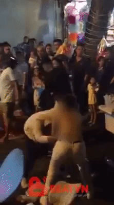Mặc dù có 2 thanh niên đứng ra can ngăn nhưng người phụ nữ mặc áo đen vẫn bị lột sạch áo. Song chị này vẫn hùng hổ lao vào đánh đấm đối phương trong tình trạng không có áo trên người.