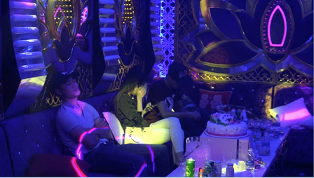 Tại thời điểm kiểm tra, lực lượng chức năng phát hiện trong 8 căn phòng đang có gần 100 thanh niên nam nữ đang nhảy múa thác loạn trong tiếng nhạc cực lớn. Khi phát hiện lực lượng kiểm tra, họ tìm cách tẩu thoát nhưng đã bị chốt chặn. Phần lớn các cô gái trong trang phục thiếu vải, hở hang, còn các thanh niên nam không mặc áo, xăm trổ khắp người.