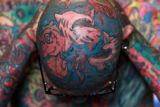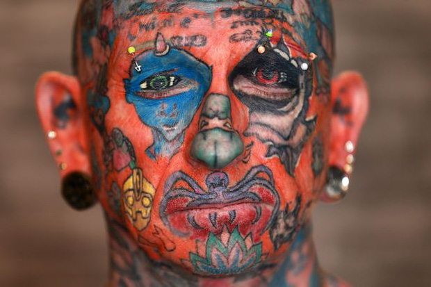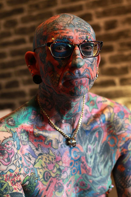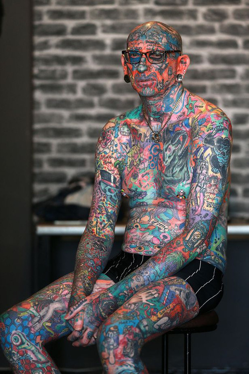 Các hình xăm rải khắp cơ thể anh Paul, chiếm 96% cơ thể.