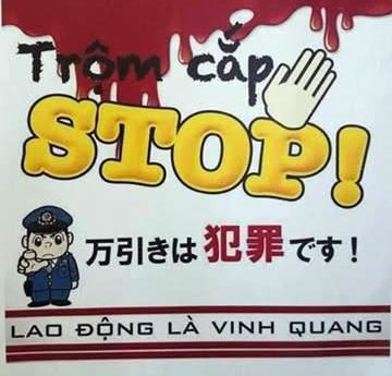 VBF-Một cán bộ không nói rõ tên đã bị bắt tại Nhật. Hành vi của người này là ăn cắp trong siêu thị. Thật buồn vì rất nhiều trường hợp tương tự đã xảy ra khiến cho Nhật phải viết cả tiếng Việt lưu ý.