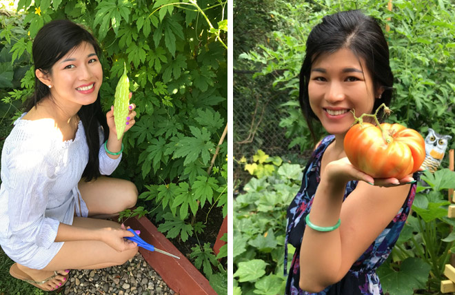 Nơi người phụ nữ Việt sống ít người Việt và không có chợ Việt. Vì vậy, chị đã trồng một vườn rau với rất nhiều loại. Những cây trái chị trồng và chăm sóc đều sai trĩu quả và xanh tốt.