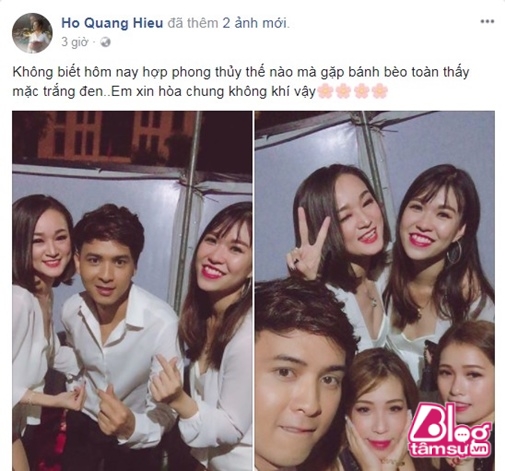 Bức ảnh cho thấy Hồ Quang Hiếu khá vui vẻ và không có dấu hiệu nào của người vừa mới chia tay bạn gái