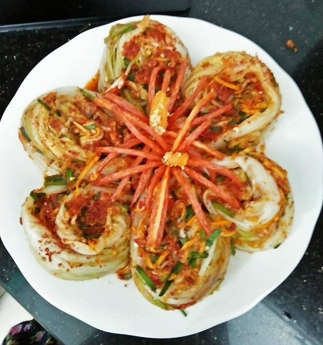Lưu ý: Cách muối trên không dùng bột nếp vì không để được lâu, kim chi dễ bị mềm và chua gắt.