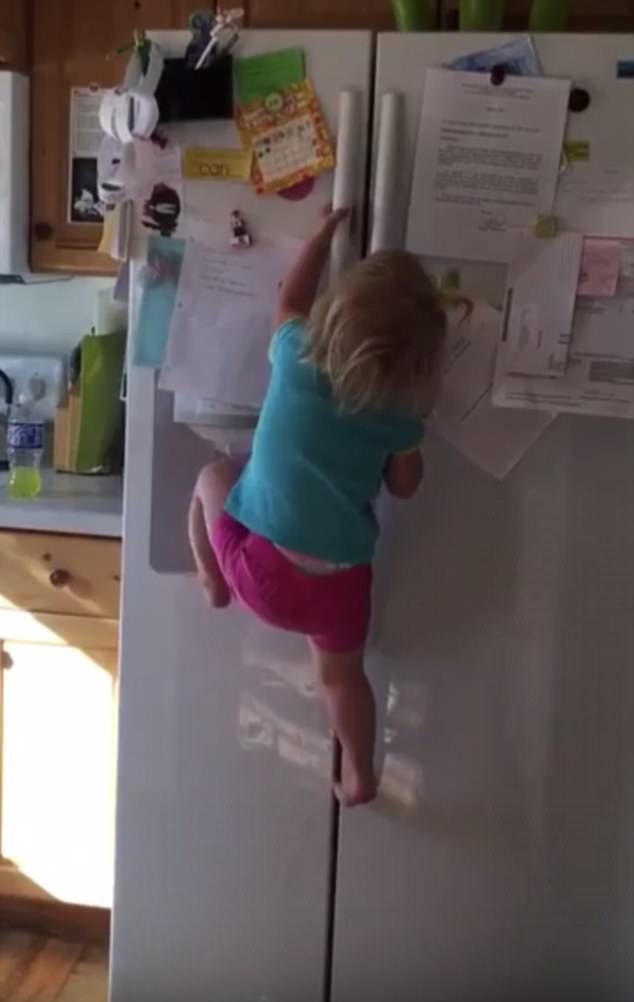 bé 2 tuổi trèo tủ lạnh, bé gái trèo nhanh thoăn thoắt, mỹ
