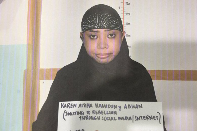 Nữ quái này có tên Karen Aizha Hamidon, là góa phụ của một tên đầu sỏ của một nhóm khủng bố nhỏ ở Midanao. Hamidon đã bị tóm gọn tại nhà riêng ở ngoại ô thủ đô Manila 1 tuần trước, ông Aguirre cho biết.