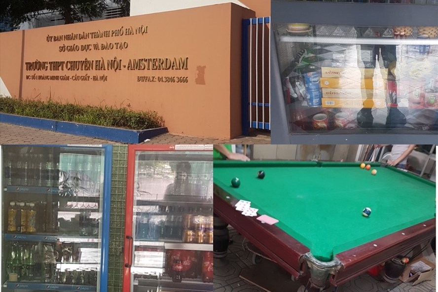 Cuối tháng 9.2017, theo đơn phản ánh của tập thể phụ huynh, chúng tôi đã đến Trường THPT chuyên Hà Nội – Amsterdam (số 1 Hoàng Minh Giám, Cầu Giấy, Hà Nội) để tìm hiểu. Chúng tôi dễ dàng vào khu thể chất của trường bằng cổng sau và tận mắt chứng kiến các mặt hàng như thuốc lá đang được bày bán công khai tại quầy dịch vụ.