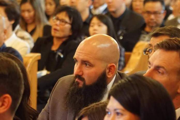 Ông Tomo Swanson (bìa phải), chồng của Michelle, tâm sự, “Michelle dạy tôi rất nhiều điều trong cuộc sống, về tình yêu, về hạnh phúc.” (Hình: Nhất Anh/Người Việt)