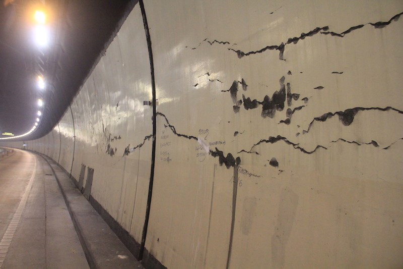 Hình ảnh hầm Hải Vân với các vết nứt kéo dài và khá nghiêm trọng. Ảnh: TẤN VIỆT