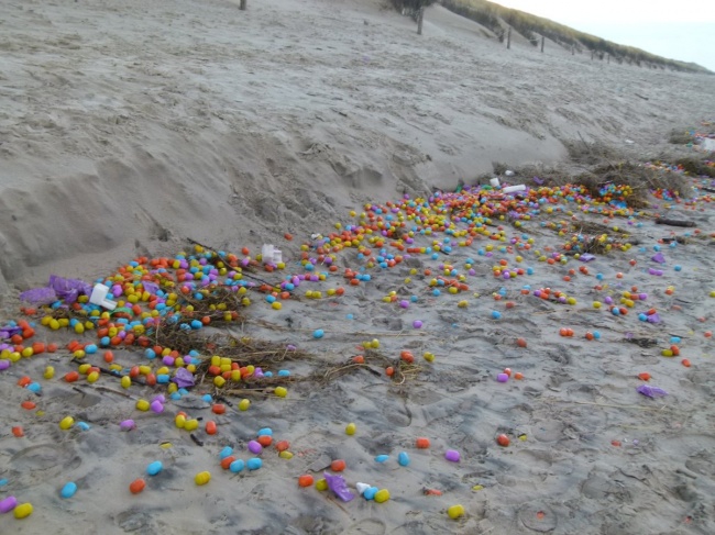 Vào tháng 1/2017, trẻ em trên hòn đảo Langeoog (Đức) đã vô cùng vui mừng như thể được nhận những món quà từ biển cả. Vài container của một chiếc tàu chở hàng đã bị rơi xuống biển do gặp phải một cơn bão. Rất nhiều những quả trứng phục sinh và đồ chơi Lego đã trôi dạt vào bờ biển tại đây.