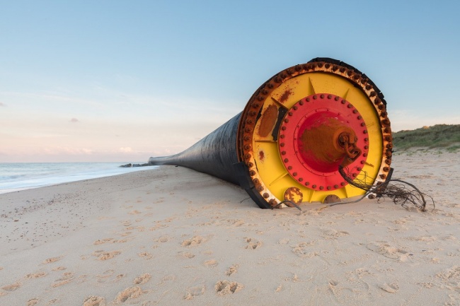 Chiếc ống có đường kính 2m đã bị rơi xuống biển trong quá trình vận chuyển. Người dân tại Norfolk (Mỹ) đã vô cùng ngạc nhiên khi thấy chiếc ống này trên bãi biển vào tháng 8/ 2017. Chiếc ống khổng lồ này dài tới gần 500m.